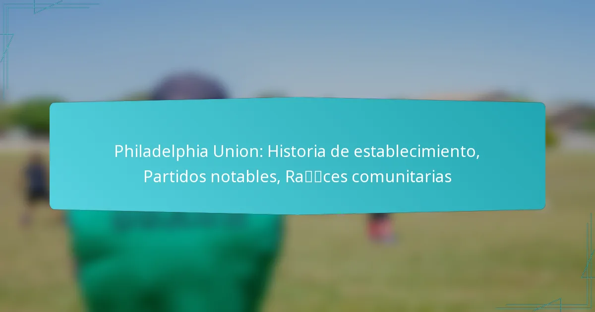 El Philadelphia Union se estableció en 2008 como un equipo profesional de fútbol en la Major League Soccer (MLS), con el objetivo de llevar fútbol de primer nivel a la región mientras fomenta fuertes conexiones comunitarias. El club ha tenido varios partidos definitorios que han moldeado su identidad, creando momentos memorables para los aficionados y la comunidad. A través de programas de alcance y asociaciones, el Union se involucra activamente con la comunidad local, promoviendo el fútbol a nivel grassroots y mejorando los lazos comunitarios.